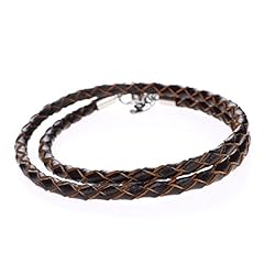 Autiga® Herren Damen Leder-Armband Leder-Halskette Geflochten Dunkelbraun Edelstahl 3mm 4mm - viele Längen 17-80 cm