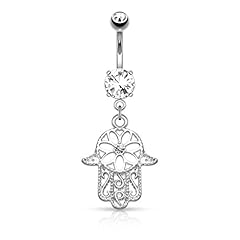 Bauchnabelpiercing mit Anhänger Fatimas Hand Hamsa14 Karat vergoldet Gold Bananabell Nabelpiercing Silber