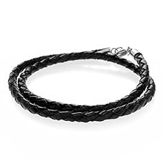 Autiga® Herren Damen Leder-Armband Leder-Halskette geflochten schwarz Edelstahl 3mm 4mm - viele Längen 17-80 cm schwarz 4 mm 45 cm