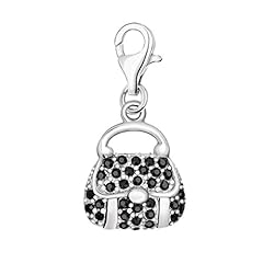 Quiges Charms Anhänger Handtasche Schwarz Zirkonia Versilbert Damen Schmuck für Bettelarmband