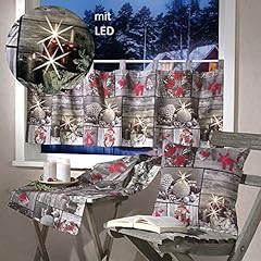heimtexland Scheibengardine mit LED Beleuchtung flackernd 45x120 cm Weihnachtsgardine Fotodruck Patchwork Weihnachten Bistrogardine ÖKOTEX Typ498
