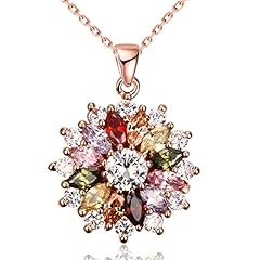 Yazilind Schmucksachen glänzende Art und Weise Farbenzirconia-Blumenform rosafarbenes Gold überzogene hängende Halskette für Frauenmädchen