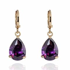 Yazilind Schmuck Charming Glatte 18K Gold überzogen Inlay glänzend lila Kristall Teardrop einfaches Design baumeln Ohrringe f¨¹r Frauen