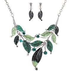 Yazilind Vintage Design tibetischen Silber Blatt Niederlassungs Kristall Ohrringe ChChunky Bibain Halskette Set