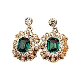 Yazilind stunding Gold überzogen dunkel grün Kristall aushöhlen Blume baumeln Ohrstecker