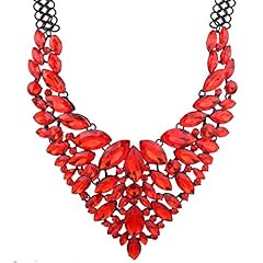 Yazilind Rote Farben-handgemachte Kristallkragen-Choker-Halskette Elegante V-Form mit glänzenden Glaskornen für Frauen-Schmucksachen