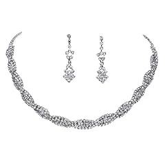 Yazilind glänzender klar Kristall Versilbert Twisted-Braut Schmuck-Sets Collier und Ohrringe