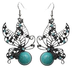 Yazilind Schmetterlings-Form Blau tibetischen Silber Türkis Kristall schmücken Türkis -Tropfen baumeln Ohrringe Länge : 2.7 Zoll