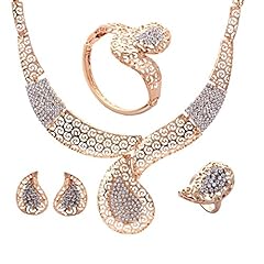 Yazilind Gold überzogene Schmucksachen Wassertropfen Halskette Ohrring Armband Finger Ring 4 Stück Schmuck Sets