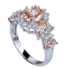 Yazilind eleganter runder Champagne Crystal Silver Engagement Frauen Ehering Size10
