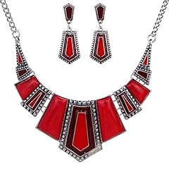 Yazilind Klassiker Ethnische Red Tibet Silber Strass Unregelmäßige Lätzchen Halsband Ohrringe Halskette Schmuck-Set Damen