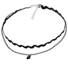 Yazilind Frauen-koreanische Weinlese-Wellen-Spitze-Schwarz Strass-Silber überzogene Verbindungs-Ketten-Lätzchen PU Leder Kragen-Halsketten