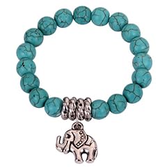 Yazilind Schmuck-Geschenk Kap Türkis-Korn- Tibet Silber Netter Elefant Stretch -Armband-Armband für Frauen & Mädchen