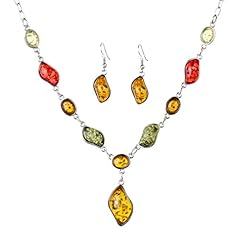 Yazilind Frauen-Weinlese-Silber überzogene Bernstein Hochzeit Schmuck-Sets Kettenhalsketten-Ohrring-Sätze