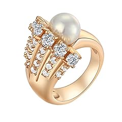 Yazilind 18K Elegante einzigartige Design Weißer Kristall mit einem Perlen Ring Gold überzogen Frauen Zirkonia 8
