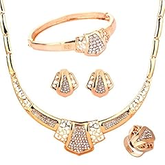 Yazilind Gold überzogene Hohle Halskette Ohrringe Armband Ring Strass Brautschmuck 4 Stück Schmuck Sets