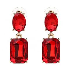 Yazilind Schmuck versilbert Rechteck rot Voll Zirkonia CZ Flawless lange baumeln Ohrringe