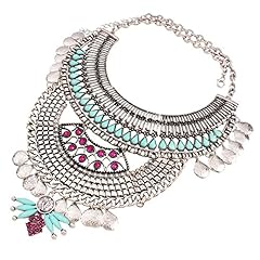 YAZILIND ethnische Art Resin Strass Bib Statement Choker Silber-Kragen-Halskette für Frauen Schmuck-Geschenk