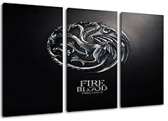 Dark Targaryen Wappen, Game of Thrones Motiv, 3-teilig auf Leinwand (Gesamtformat: 120x80 cm), Hochwertiger Kunstdruck als Wandbild. Billiger als ein Ölbild! ACHTUNG KEIN Poster oder Plakat!