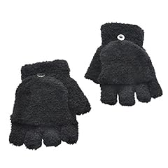 Tinksky Halbe Fingerhandschuhe Winter Fingerlose Handschuhe warm weiche Fäustlinge Weihnachtsgeschenke für Jungen Mädchen (Schwarz)