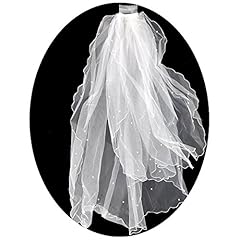Tinksky Damen Perlen Perlen Hochzeit Brautschleier Mantilla mit Kamm Einfache lange Doppelschicht Brautschleier Elfenbein 1 Mete (Weiß)