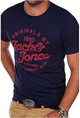 JACK & JONES Herren T-Shirt Kurzarmshirt Top Print Shirt Casual Basic O-Neck (M, Navy Blazer)