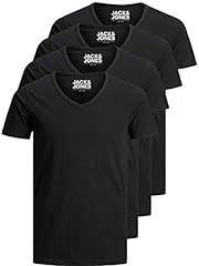 Jack and Jones Herren T-Shirt Basic V-Ausschnitt 4er Pack Einfarbig Slim Fit In Weiß Schwarz Blau Grau (L, 4er Pack Schwarz)