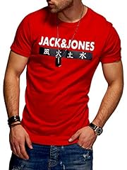 JACK & JONES Herren T-Shirt Kurzarmshirt Top Print Shirt Casual Basic O-Neck (X-Large, Tango Red)