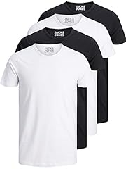 JACK & JONES 4er Pack Herren T-Shirt Basic V-Ausschnitt oder Rundhals einfarbig Slim Fit in weiß schwarz blau grau
