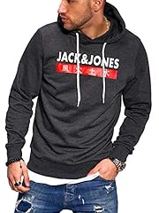JACK & JONES Herren Hoodie Kapuzenpullover Sweatshirt Pullover Streetwear 4 Elements (Large, Dark Grey Melange)