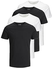 JACK & JONES 4er Pack/Set Einfarbige Herren Marken T-Shirt mit Rundhals Weiß und Schwarz Slim Fit ohne Aufdruck S M L XL XXL Gratis Wäschenetz von B46
