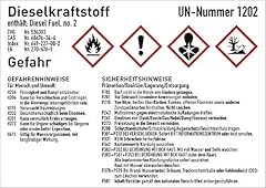 Aufkleber Gefahrstoffkennzeichnung Dieselkraftstoff gem. GHS 7,4x10,5cm Folie mit mattem Laminat, für Gebindegröße 3-50 Liter praxisbewährt