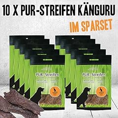PUR Kaustreifen Kängruru 10 x 100g aus 100% Kängruru PUR 10 x 100g ohne irgendwelche Zusätze getrocknet Aus je ca. 500g frischem Kängruru hergestellt Sauber leicht teilbar und wunderbar weich