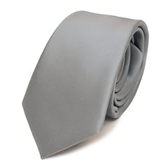 TigerTie schmale Satin Krawatte in grau hellgrau silber einfarbig uni