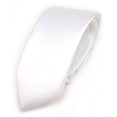 TigerTie schmale Satin Krawatte in weiss schneeweiss einfarbig uni