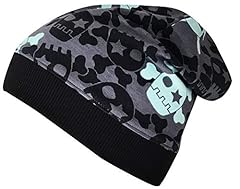 Wollhuhn Öko Jungen/Mädchen Leichte Coole Skulls Beanie-Mütze Dunkelgrau/Mint 20180950