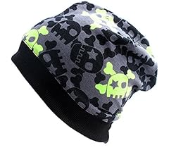 Wollhuhn ÖKO Leichte Beanie-Mütze mit coolen Skulls in grau/grün für Jungen und Mädchen, 20140807, Größe: M