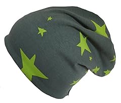 Wollhuhn Long-Beanie, Wende-Mütze, ganzjährig, mit Sternen Grüntöne, Innenseite Uni grau, für Jungen und Mädchen, 20150809, Gr S: KU 48/50 (ca 1-3 Jahre)