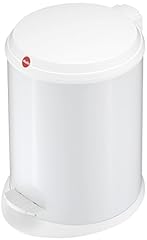 Hailo Harmony M Mülleimer (aus Stahlblechl, 12 Liter, breite Metall-Fußreling, Müllbeutel-Klemmung, Deckeldämpfung (Soft Close), weiss) 0515-030