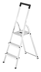 Hailo L40 BasicLine Alu-Sicherheits-Stehleiter, 3 Stufen, EasyClix, schwarzer Haltebügel, Eimerhaken, silber, made in Germany, 8140-307