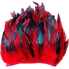 ERGEOB® Echte Hahnenfedern auf 200cm Stoffstreifen in Rot - 13 Farbvarianten - Ideal für Fasching, Karneval, Halloween, Basteln, Bekleidung, Kostüme.