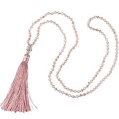KELITCH Tasselkette Kristall Perlen Damen Lange Kette mit Buddha-Kopf Quaste Anhänger - Rose Rosa