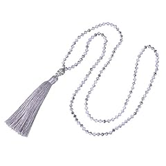 KELITCH Handmade AB Kristall Perlen Lang Kette mit Buddha-Kopf Quaste Anhänger, Grau