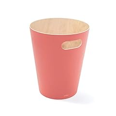 Umbra Woodrow Abfalleimer - Zweifarbiger Holz Papierkorb für Büro, Badezimmer, Wohnzimmer und Mehr, 7,5l Fassungsvermögen, Natur/Korallenrot, Koralle,