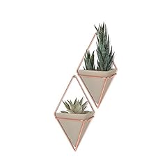Umbra Trigg Wandvase & Geometrische Deko - Übertopf Für Zimmerpflanzen, Sukkulenten, Luftpflanzen, Kakteen, Kunstpflanzen und Mehr, Keramik / Metall, Weiß / Mattes Messing