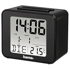 Hama Funk-Wecker "Cube" (digital, beleuchtet, automatische Zeitanpassung, ansteigender Weckton, Snooze, Temperatur-Anzeige, Batterie) Reisewecker, Funkuhr, Digitalwecker schwarz