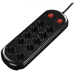 Hama Steckdosenleiste 10-fach (Überspannungsschutz, zwei Schalter zur Gruppenschaltung, Kindersicherung, Ösen zur Wandmontage, Kabelorganizer, 45° gedreht, max. 3500 W, 2 m Kabel) schwarz