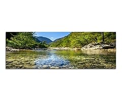 Panoramabild auf Leinwand und Keilrahmen 120x40cm Wald Bach Steine Wildnis Natur Sommer