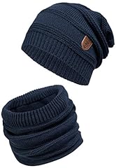 Indicode Herren Brydges Winterset Mütze & Schal | Set oversize Beanie & Strickloop Strickmütze Strickschal Long Slouch Winterbeanie Loop Herrenmütze Wintermütze Winterschal f. Männer Navy One Size