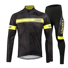 Lixada Radtrikot Fahrradbekleidung Set Langarm Winddicht Herren Winter Thermische Fleece mit 3D Polster Hosen (M, Gelb)